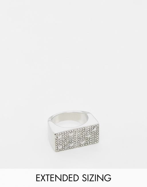 Anillo plateado con diseño de dos dados y cristales de ASOS DESIGN