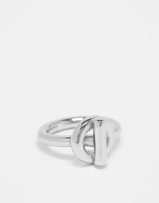 Anillo plateado para festivales con diseño de barra en forma de T de acero inoxidable resistente al agua de ASOS DESIGN