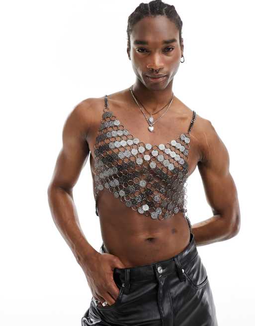 Arnés corporal negro brillante con detalle de anillas y discos de ASOS DESIGN