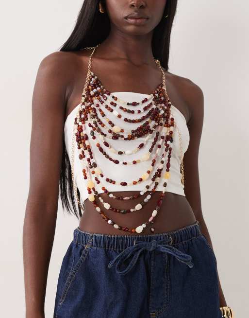 ASOS DESIGN - Cadena para el vientre dorada con cuentas de edición limitada