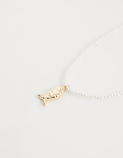 ASOS DESIGN - Collar dorado de perlas de imitación con colgante de pez