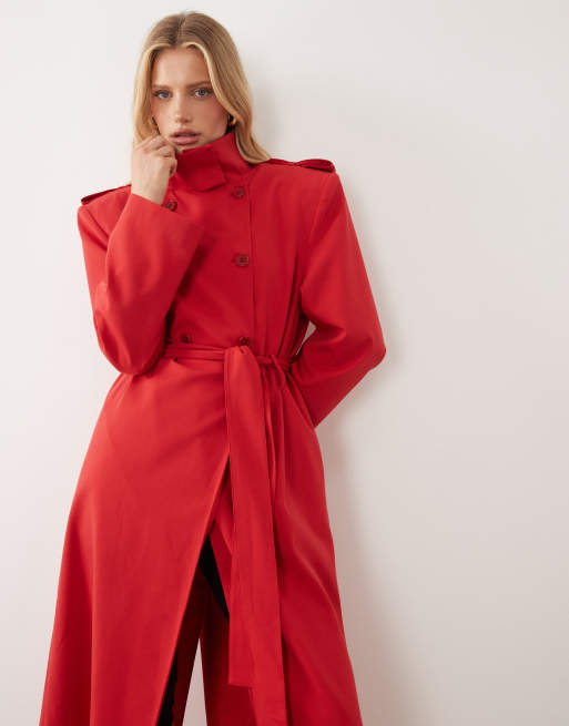 ASOS DESIGN - Gabardina de sastre roja con hombreras