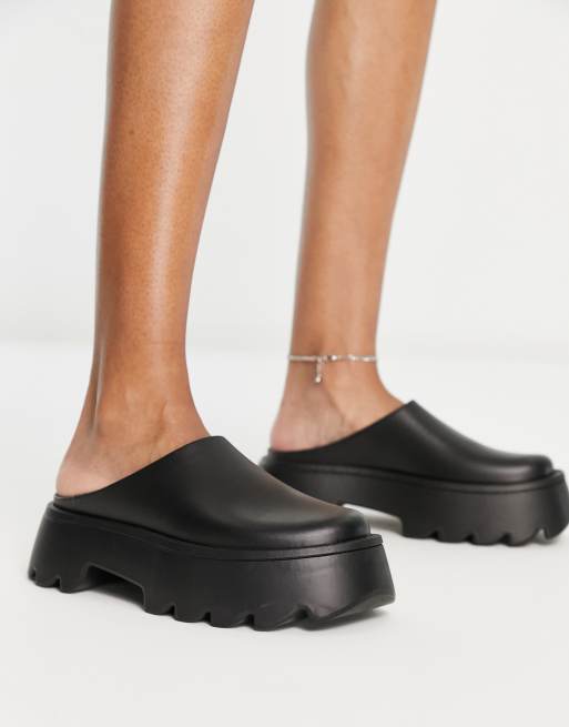 ASOS DESIGN Mai Tai plastic chunky flat mules in black - BLACK