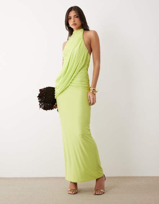 ASOS DESIGN - Vestido largo color lima drapeado con cuello alto