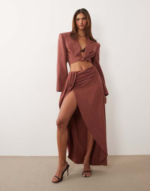 ASOS x THE SOURCED COLLECTION - Falda larga color óxido drapeada