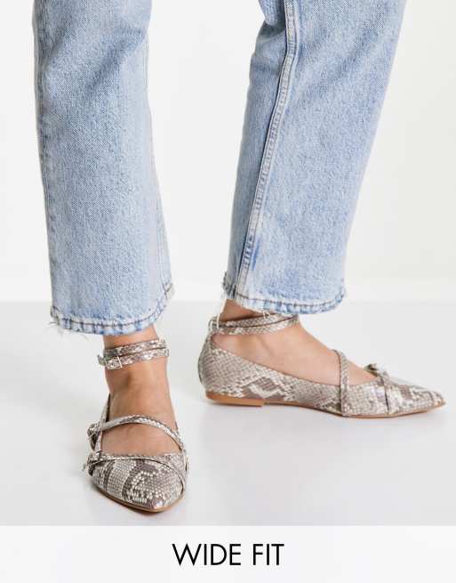 Bailarinas con estampado de serpiente, puntera fina y diseño de tiras Ludo de ASOS DESIGN Wide Fit