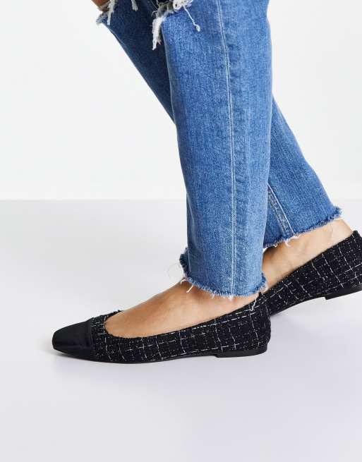 Bailarinas negras de tweed con puntera cuadrada Locket de ASOS DESIGN
