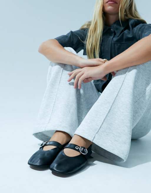 Bailarinas negras estilo merceditas de cuero premium Lavish de ASOS DESIGN