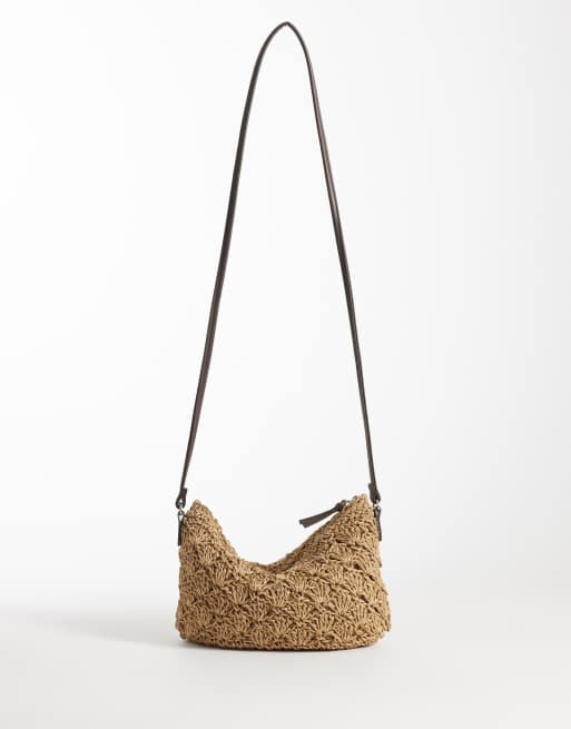 Bandolera beis con diseño de conchas de croché de paja de ASOS DESIGN