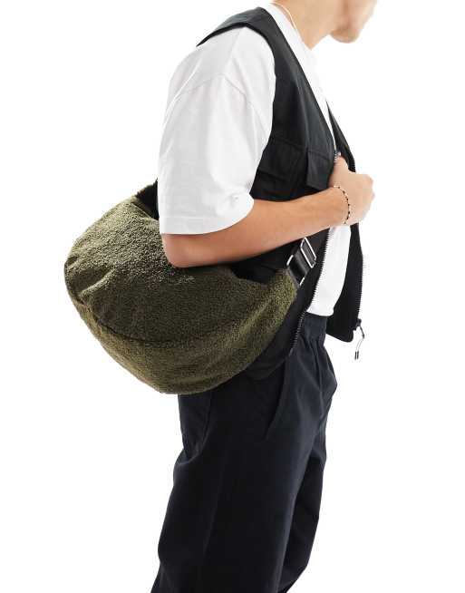 Bandolera caqui de borreguito sintético de ASOS DESIGN