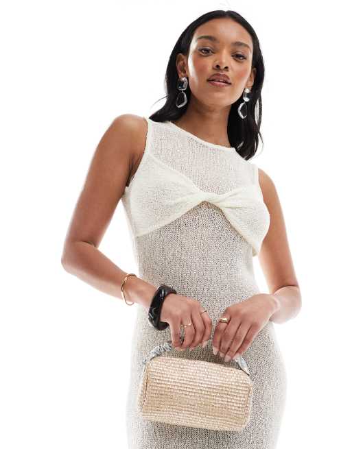 Bandolera de paja con asa superior plateado metalizado de ASOS DESIGN