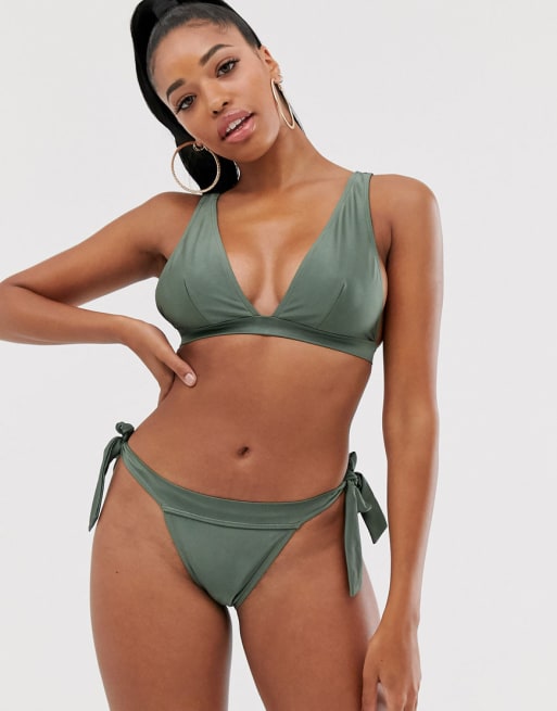 Bikini caqui brillante en copa E-G de ASOS DESIGN Fuller Bust