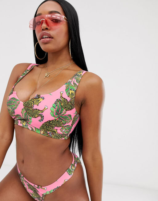 Bikini con estampado rosa de tigre tropical exclusivo de ASOS DESIGN fuller bust