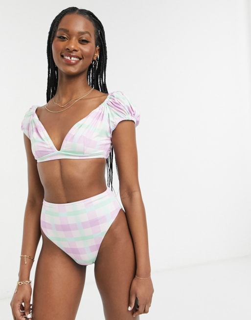 Bikini con mangas y estampado de cuadros de ASOS DESIGN