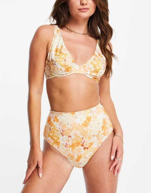 Bikini escotado con aros y estampado floral retro de ASOS DESIGN