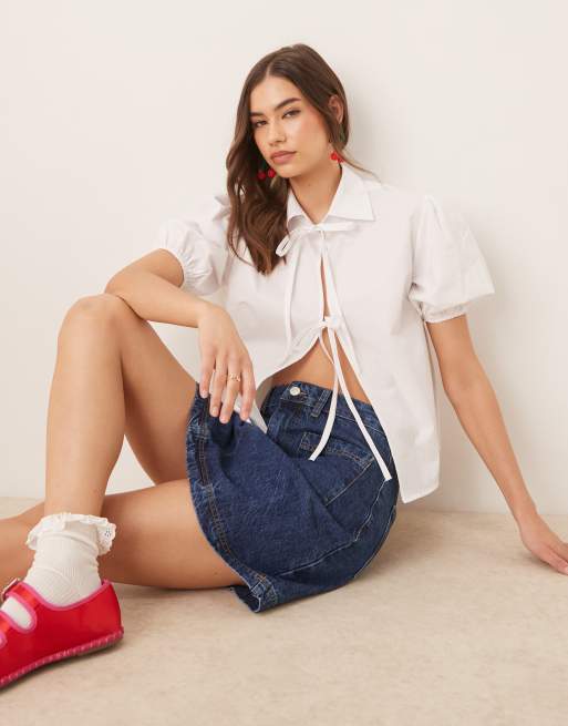 Blusa blanca con mangas abullonadas y lazada delantera de ASOS DESIGN