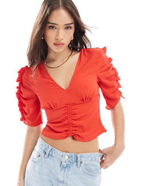 Blusa de tarde roja con cuello de pico de ASOS DESIGN