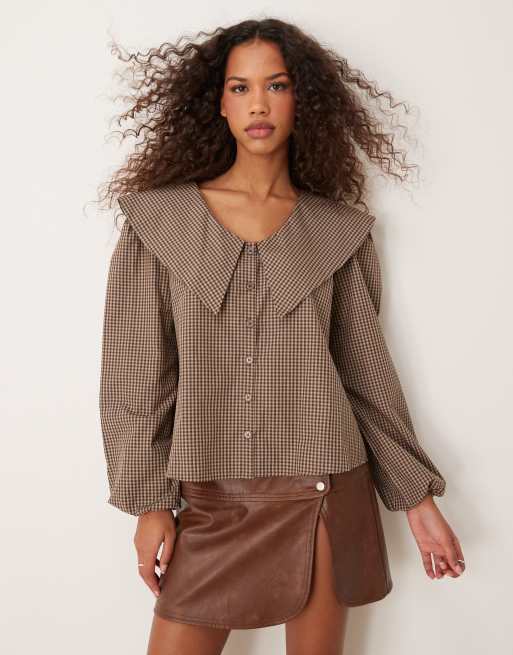 Blusa marrón a cuadros con solapas extragrandes de ASOS DESIGN