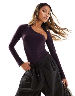 Body color grosella negra ceñido con abertura asimétrica en el cuello de ASOS DESIGN
