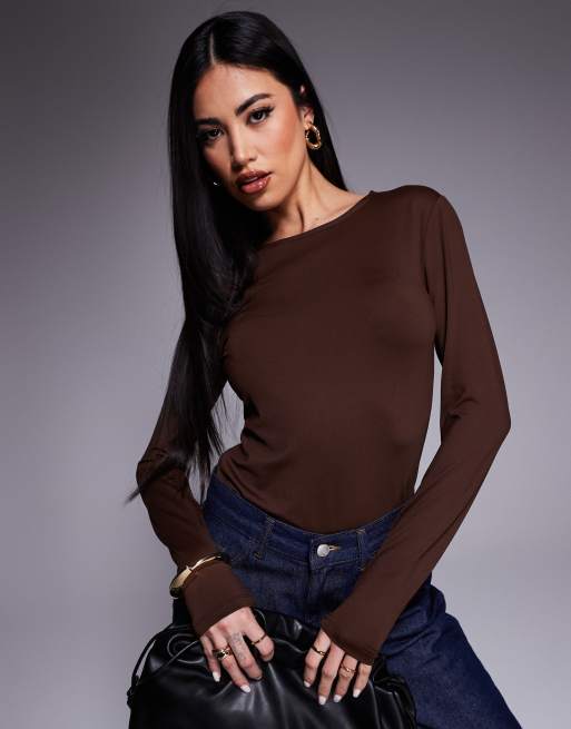 Body marrón chocolate ceñido de manga larga de ASOS DESIGN