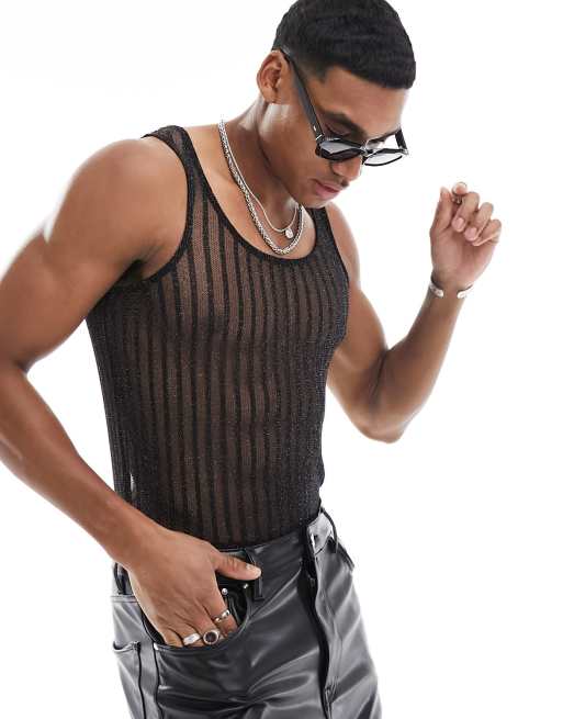Body negro ajustado con acabado efecto purpurina de malla de ASOS DESIGN