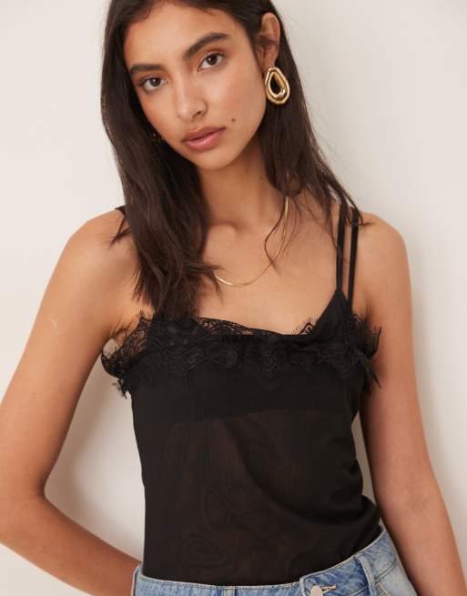 Body negro de malla con ribete de encaje de ASOS DESIGN