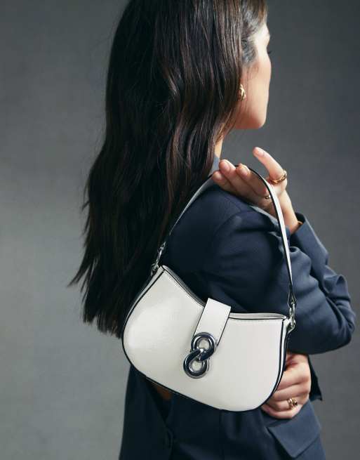 Bolso de hombro blanco con detalle de anillas gruesas entrelazadas de metal de ASOS DESIGN