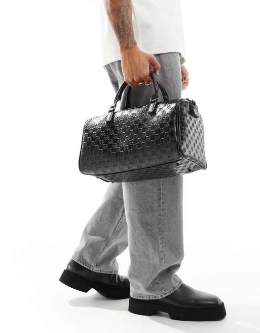 Bolso negro estilo bolera de tamaño mediano con diseño a cuadros dameros en relieve de ASOS DESIGN
