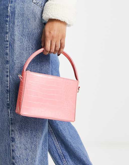 Bolso rosa efecto piel de cocodrilo cuadrado con asa de mano y correa desmontable de ASOS DESIGN