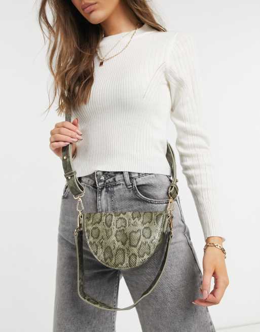 Bolso saddle verde efecto serpiente estilo bandolera con correa de hombro desmontable de ASOS DESIGN