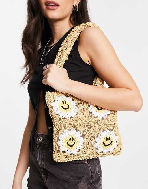 Bolso tote beis con diseño de soles felices de croché de ASOS DESIGN
