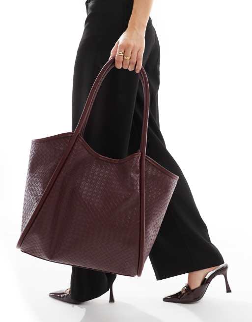 Bolso tote burdeos con diseño entretejido y ribetes tubulares de ASOS DESIGN