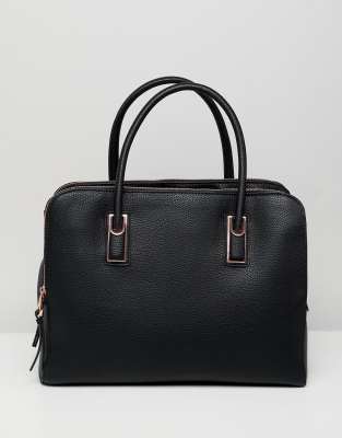 Bolso tote con compartimento con cremallera en dorado rosa y correa de quita y pon de ASOS DESIGN
