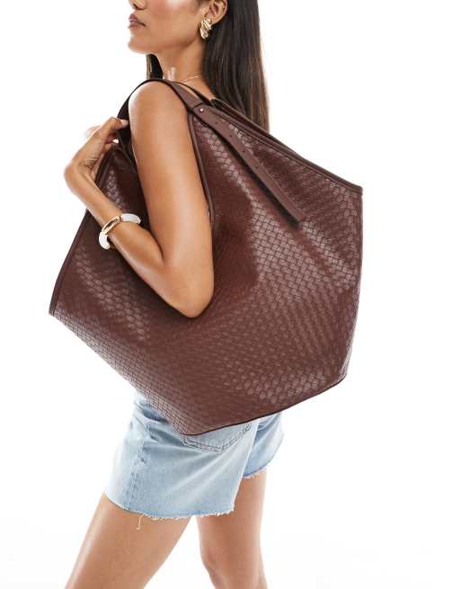 Bolso tote marrón chocolate con asas tubulares y diseño entretejido de ASOS DESIGN