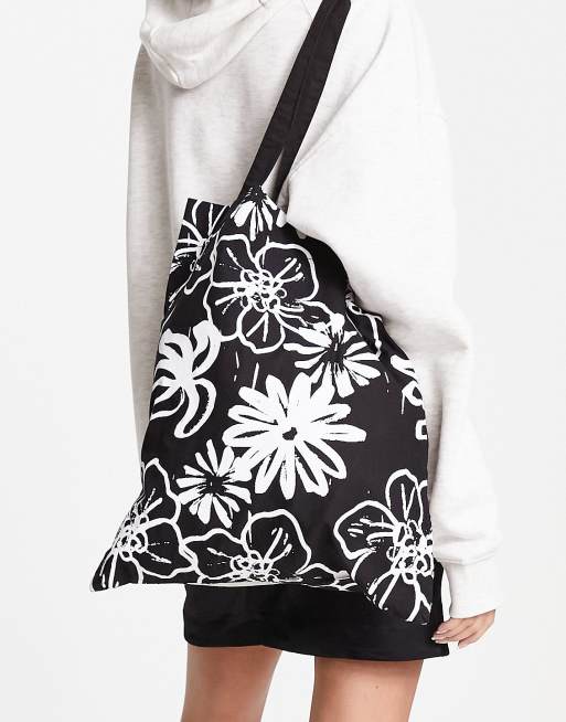 Bolso tote negro con estampado floral abstracto de algodón de ASOS DESIGN