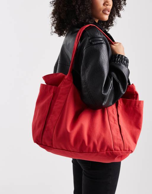 Bolso tote rojo tomate con bolsillos de lona de ASOS DESIGN
