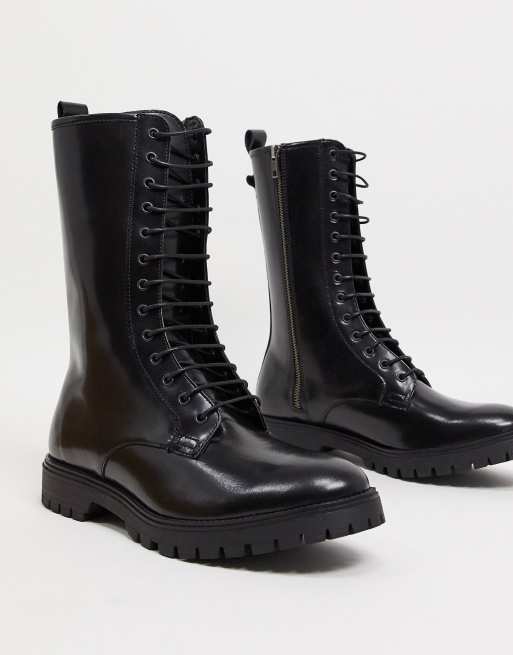 Botas altas de cuero negro con cordones de ASOS DESIGN
