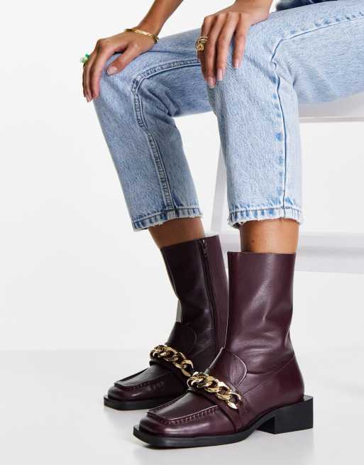 Botas burdeos estilo mocasín con cadena de cuero premium Alarm de ASOS DESIGN