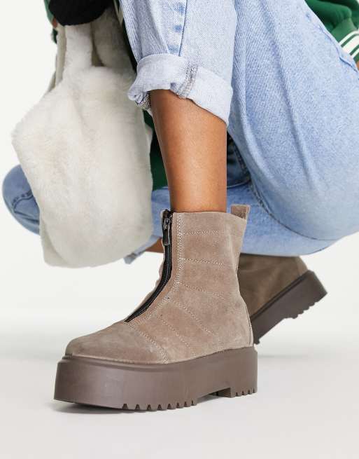 Botas color topo planas con suela gruesa y cremallera en la parte delantera de ante Agent de ASOS DESIGN