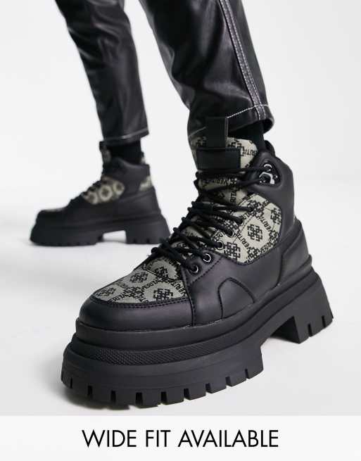 Botas con estampado de monograma, suela gruesa y cordones de ASOS DESIGN