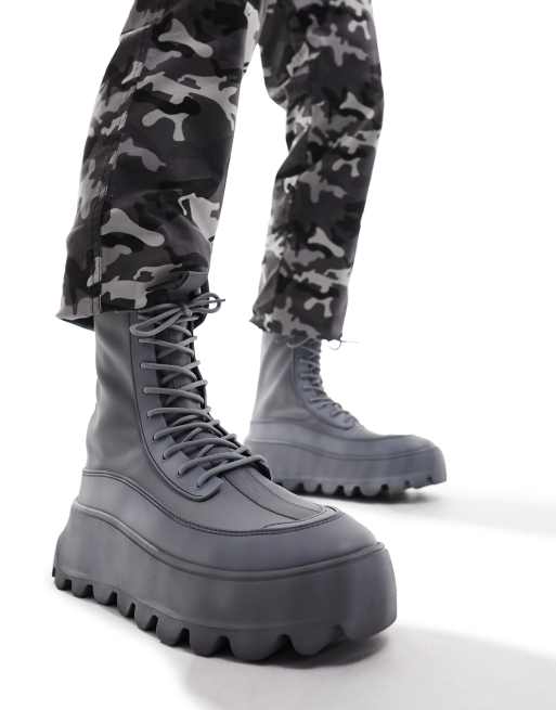 Botas gris apagado estilo calcetín con cordones y suela gruesa de tejido efecto neopreno de ASOS DESIGN