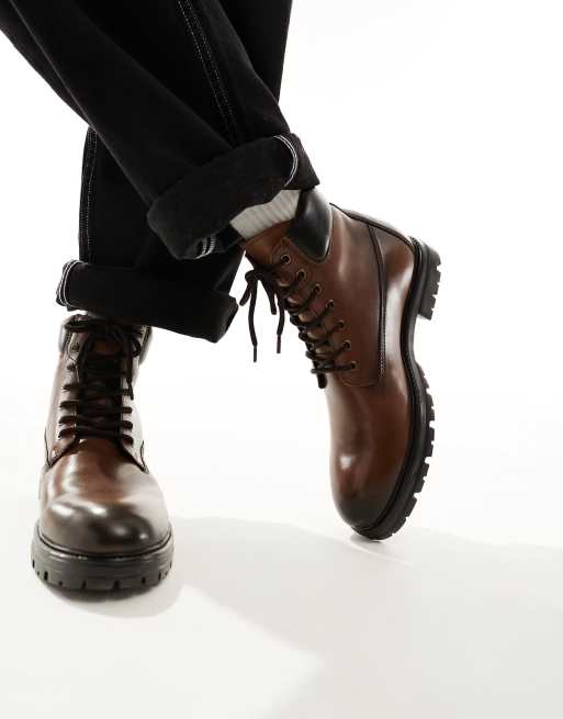 Botas marrones estilo worker con cordones de cuero de ASOS DESIGN