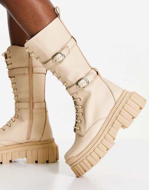 Botas por la rodilla beis con suela gruesa y cordones de cuero premium Cosmic de ASOS DESIGN