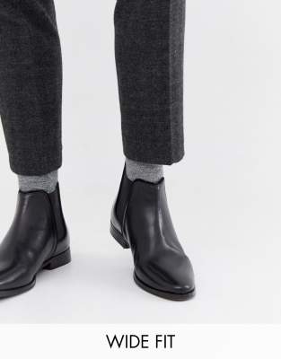 Botines Chelsea de cuero negro con suela negra de ASOS DESIGN Wide Fit