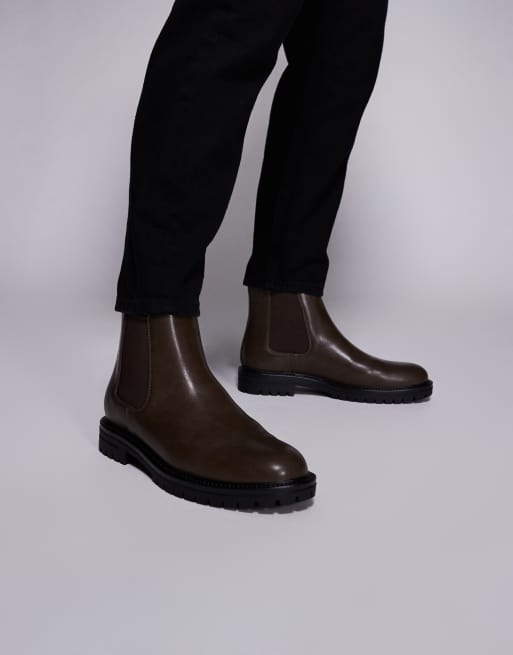Botines Chelsea marrones de cuero desgastado de ASOS DESIGN