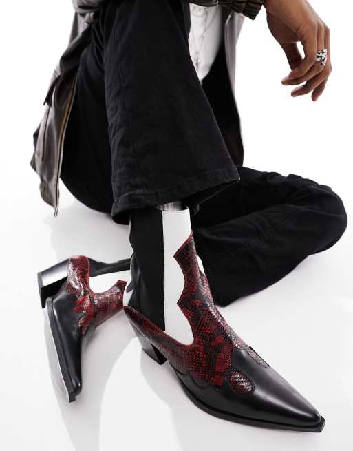 Botines Chelsea negros y rojos de estilo wéstern de tacón de cuero de ASOS DESIGN