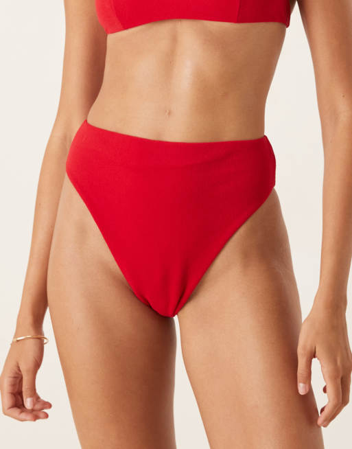 Braguitas de bikini rojas de talle y pernera altos de tejido rizado Tia de ASOS DESIGN