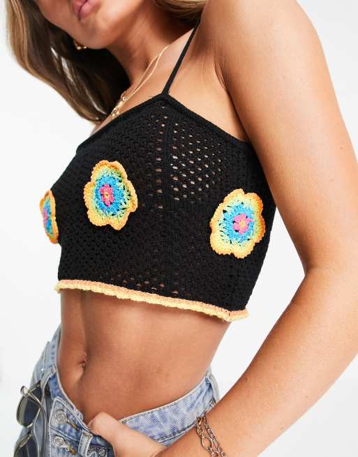 Bralette negro con detalle floral de croché de ASOS DESIGN (parte de un conjunto)