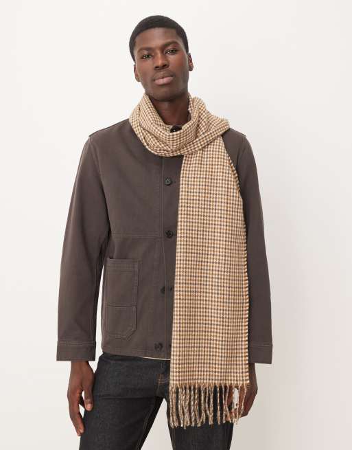 Bufanda beis a cuadros con estampado de pata de gallo de tejido liso de ASOS DESIGN