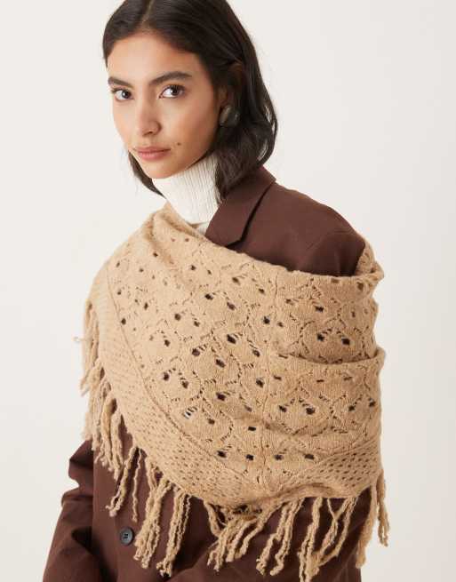 Bufanda beis con flecos de punto mullido de ASOS DESIGN
